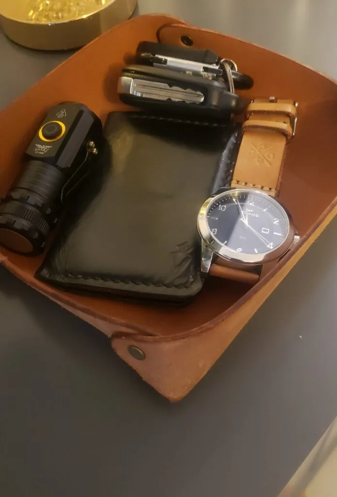 O Organizador de Mesa em Couro Savana foi construído para ajudar a manter seus itens de transporte diários em um só lugar, além de facilitar e otimizar o seu dia-a-dia. Seja suas chaves, relógio, uma carteira DANTE Capelli Co, óculos, ou qualquer outra coisa que você encontrar no fundo dos bolsos no final do dia, esse organizador de mesa sempre será um refúgio seguro para seus itens, dando um toque atemporal e de extremo bom gosto à sua bancada.